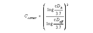 Determining the impact of geometry on wall effects is relatively straightforward, but calculating the impact of the corners is not and usually does not lend itself to easy measurement. Because wall effects can be expressed as a linear function of the fiction factor (for a given roughness), a correction factor for wall effects can be easily developed. The correction factor is simply the ratio of the friction factor calculated using the effective diameter versus the friction factor using the hydraulic diameter. This ratio reduces to: