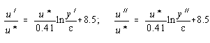 In the preceding equations u' represents the velocity at distance y', the location corresponding to the nearest traverse point from the wall on a circular stack and u'' is the velocity at point y'', the nearest point on a rectangular duct. Setting u' = 1, assuming a roughness value of 0.1, for a square duct we find that: